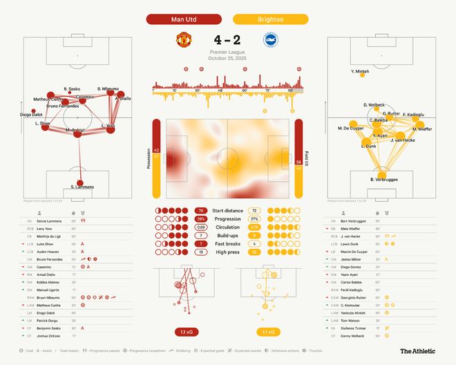 曼联击败布莱顿之战中,当卡塞米罗远射破门时,看台上的老板吉姆·拉特克里夫爵士也起立鼓掌。拉爵可能是曼联管理层最不喜欢这位巴西铁腰的一人,早就公开表示引进他花的是「傻钱」。但这场比赛,卡塞米罗1传1射,并有5次抢断和3次铲球,完全配得上老板的掌声。当鲁本·阿莫林把他换下后,比赛形势立即发生了变化,0-3落后的布莱顿两次进球。